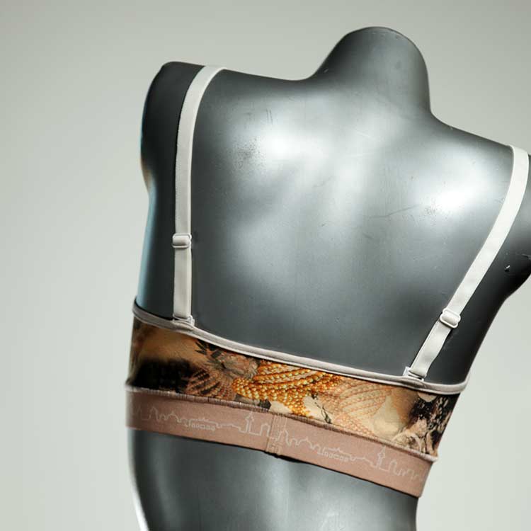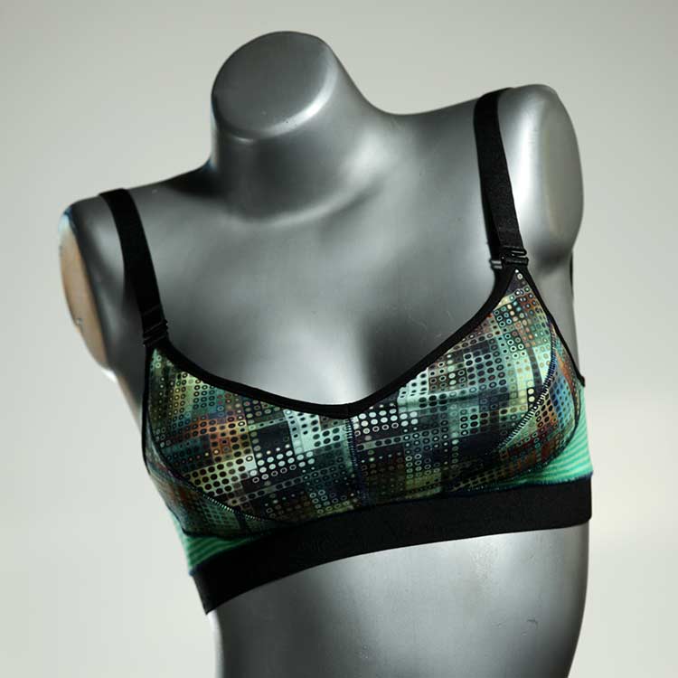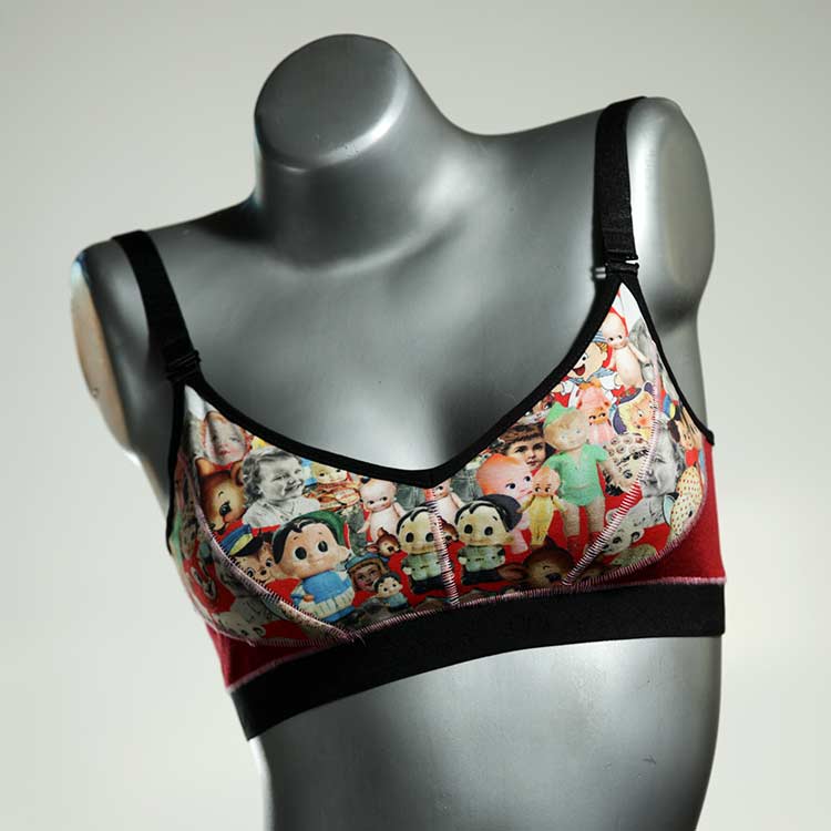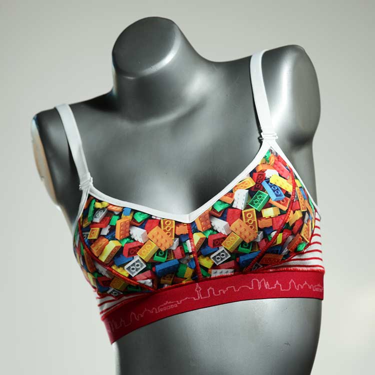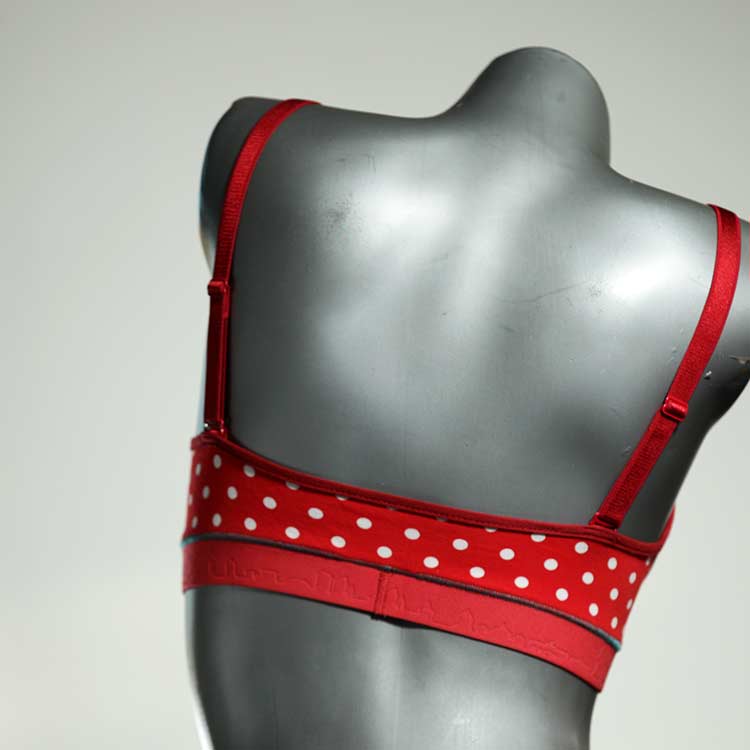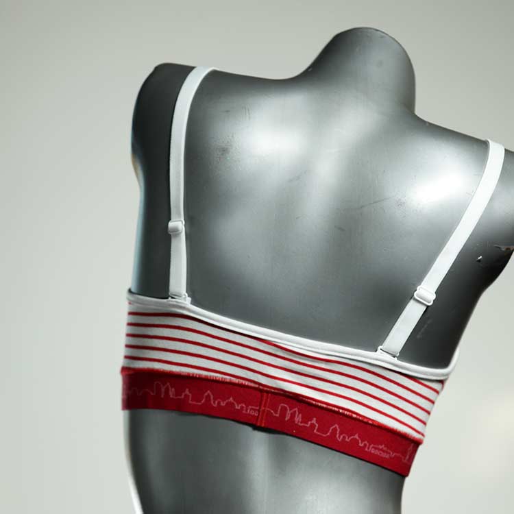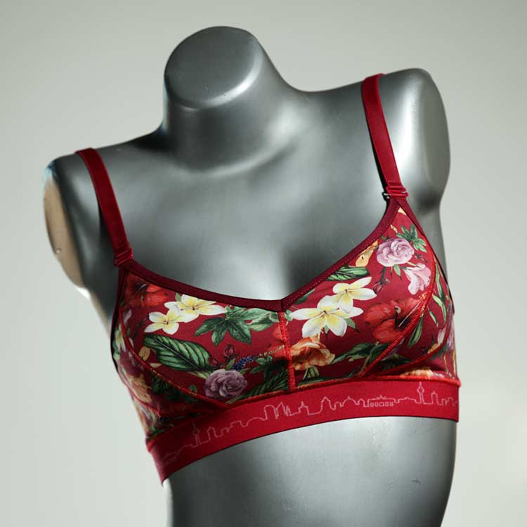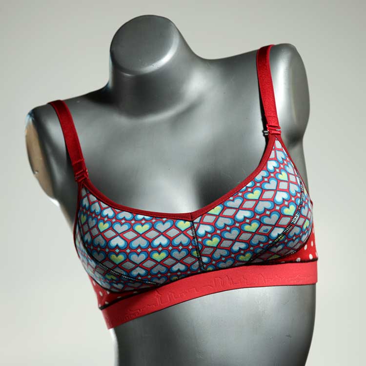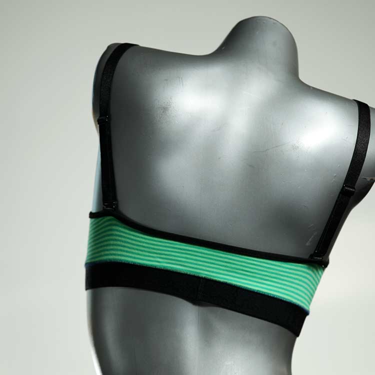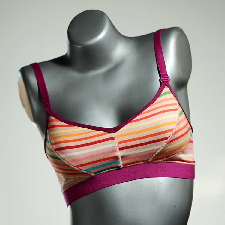 Reggiseni morbidi e coccolosi realizzati in jersey di cotone traspirante con design unici. Veri pezzi unici che abbiamo disegnato secondo i vostri desideri. Senza fili, senza cuscino o chiusura, sono comodi da indossare e si adattano perfettamente al tuo corpo. Le spalline sono larghe 16 mm, le coppe sono a doppio strato e realizzate in cotone organico all'interno. I reggiseni di Berlin Underwear non sono principalmente sexy, dovrebbero essere comodi. Sono adatti anche come reggiseni per l'allattamento.