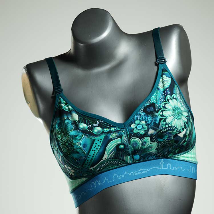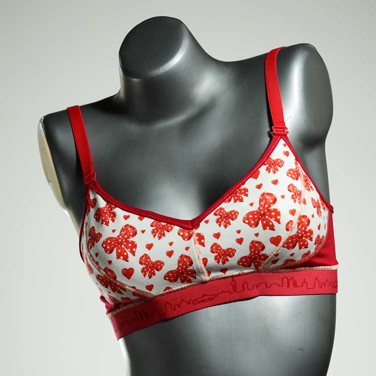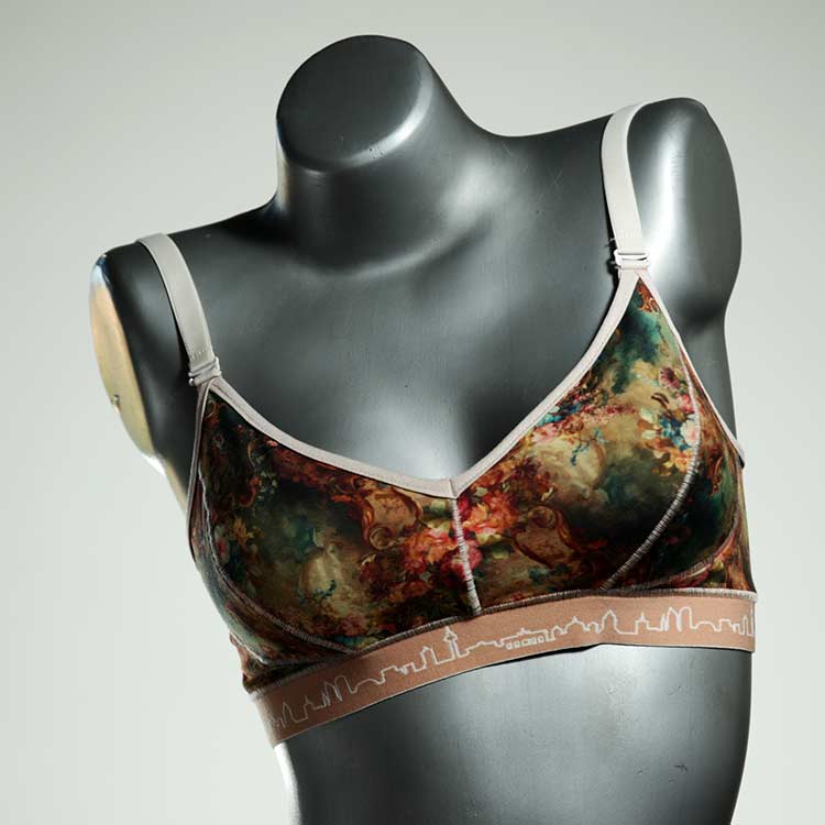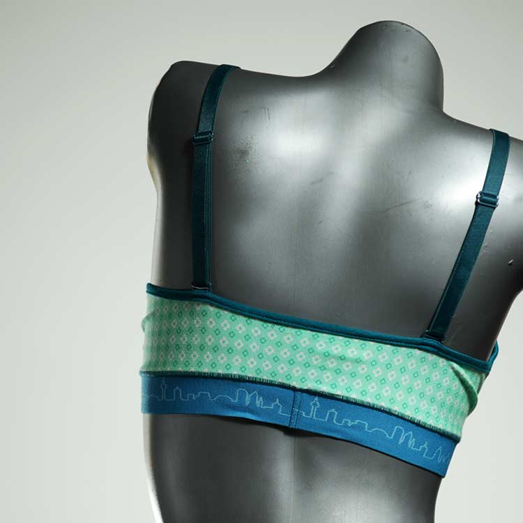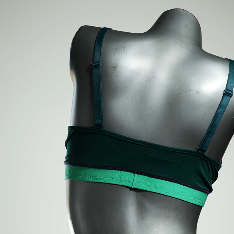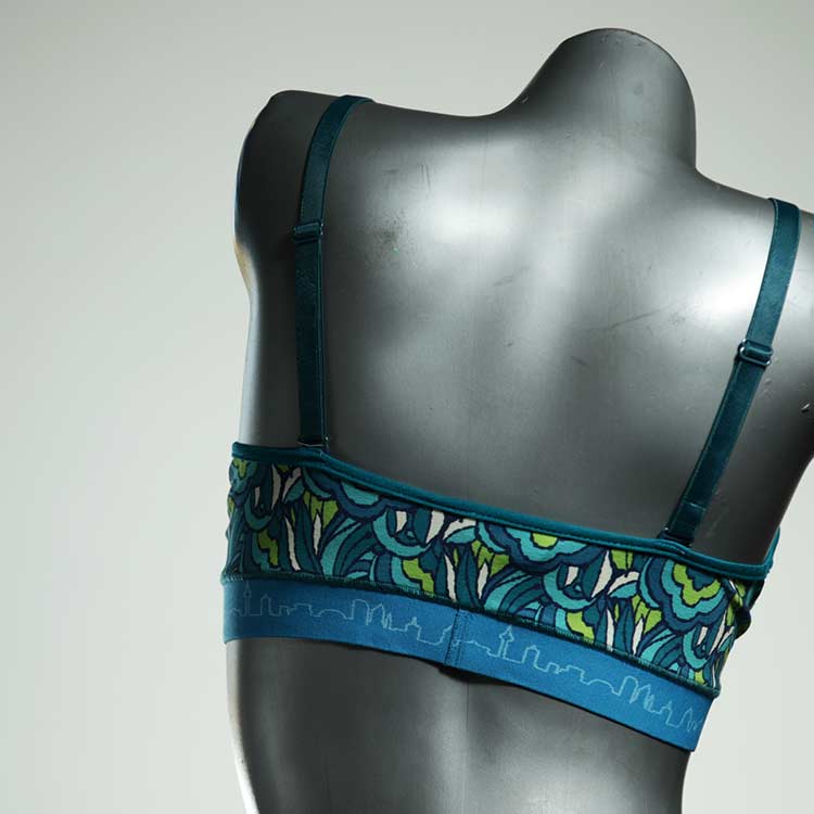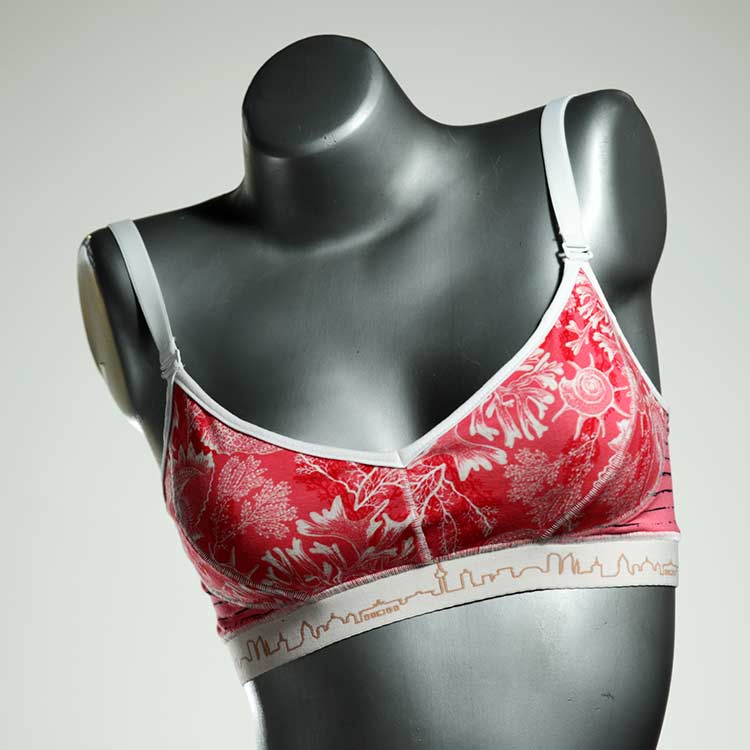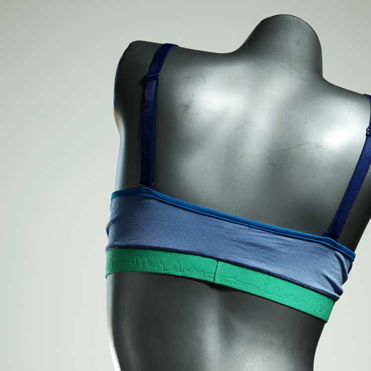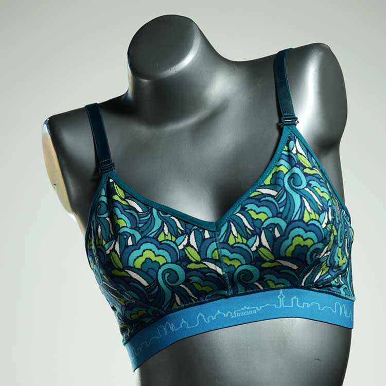 Reggiseni morbidi e coccolosi realizzati in jersey di cotone traspirante con design unici. Veri pezzi unici che abbiamo disegnato secondo i vostri desideri. Senza fili, senza cuscino o chiusura, sono comodi da indossare e si adattano perfettamente al tuo corpo. Le spalline sono larghe 16 mm, le coppe sono a doppio strato e realizzate in cotone organico all'interno. I reggiseni di Berlin Underwear non sono principalmente sexy, dovrebbero essere comodi. Sono adatti anche come reggiseni per l'allattamento.