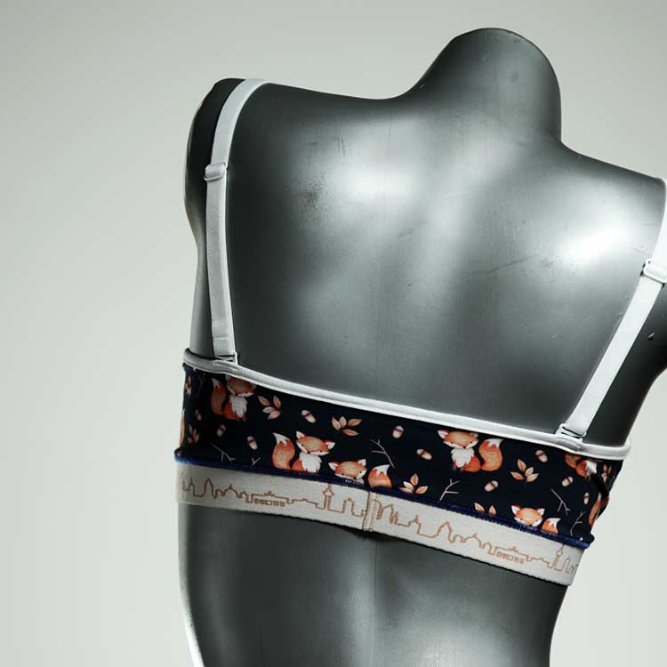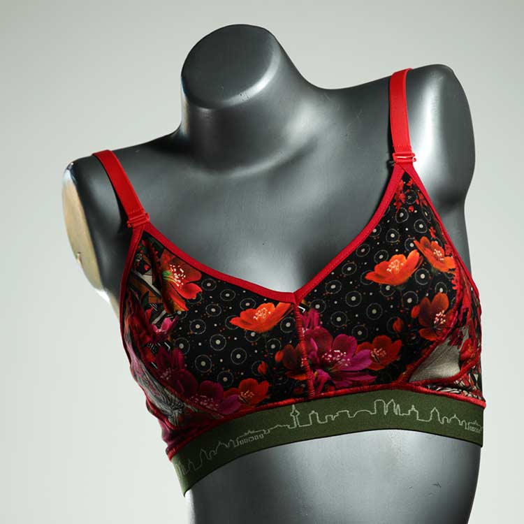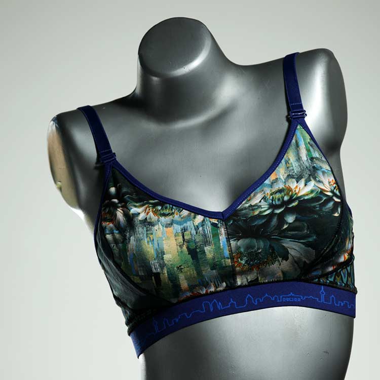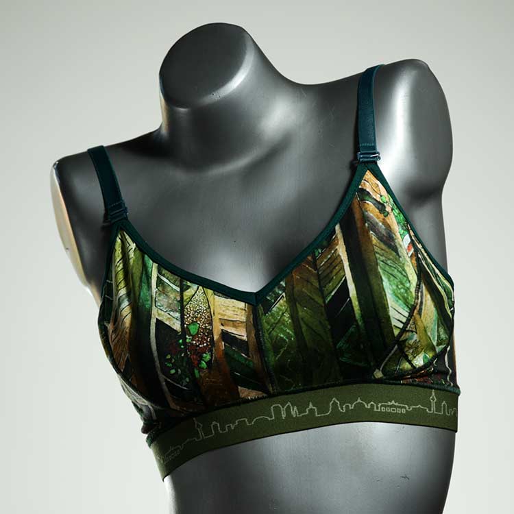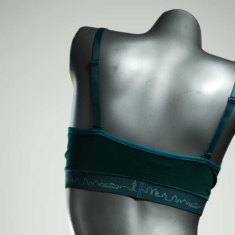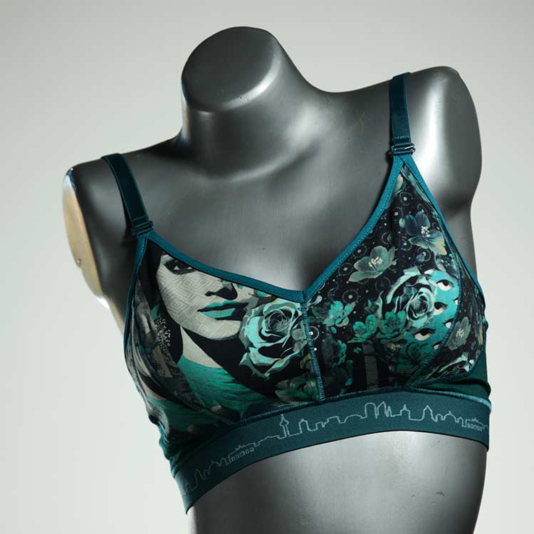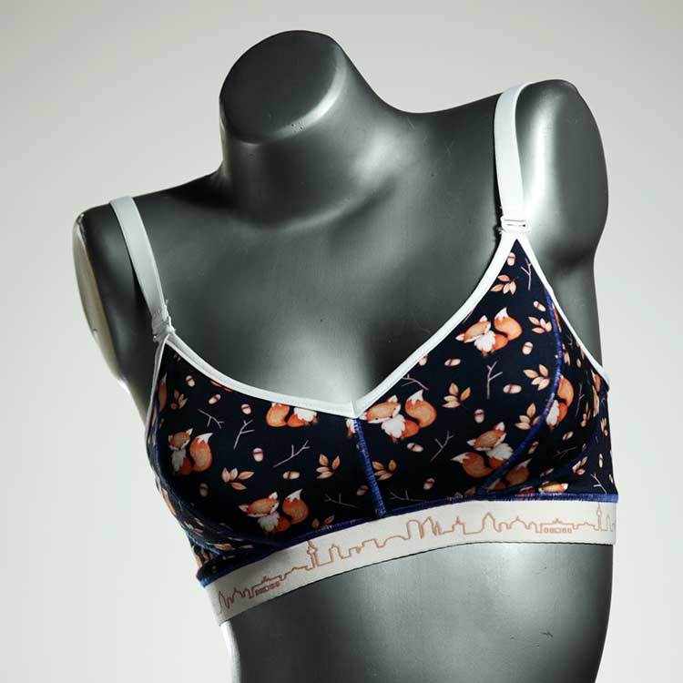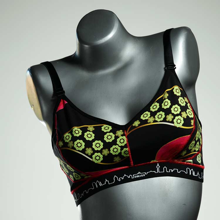 Reggiseni morbidi e coccolosi realizzati in jersey di cotone traspirante con design unici. Veri pezzi unici che abbiamo disegnato secondo i vostri desideri. Senza fili, senza cuscino o chiusura, sono comodi da indossare e si adattano perfettamente al tuo corpo. Le spalline sono larghe 16 mm, le coppe sono a doppio strato e realizzate in cotone organico all'interno. I reggiseni di Berlin Underwear non sono principalmente sexy, dovrebbero essere comodi. Sono adatti anche come reggiseni per l'allattamento.