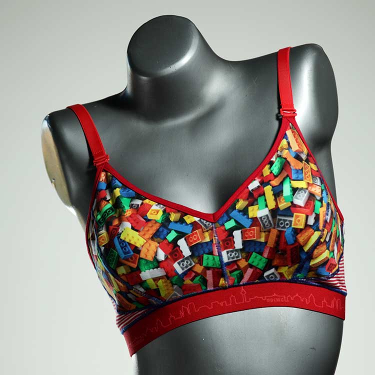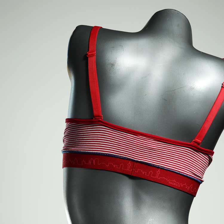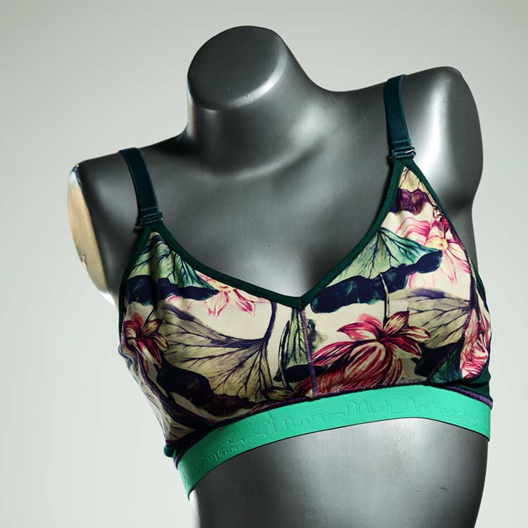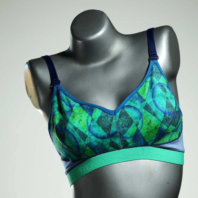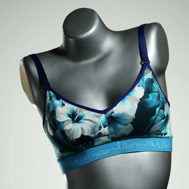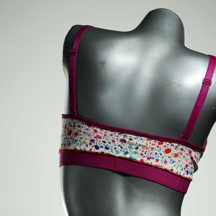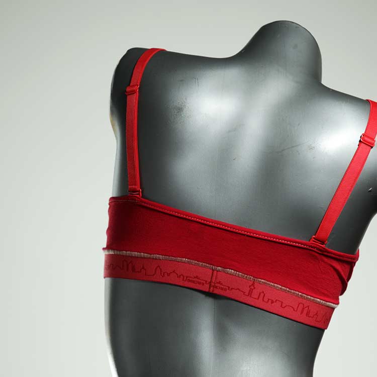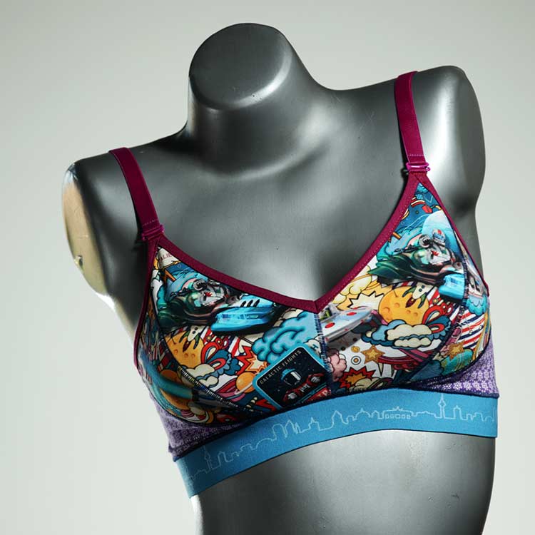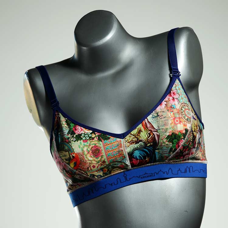 Reggiseni morbidi e coccolosi realizzati in jersey di cotone traspirante con design unici. Veri pezzi unici che abbiamo disegnato secondo i vostri desideri. Senza fili, senza cuscino o chiusura, sono comodi da indossare e si adattano perfettamente al tuo corpo. Le spalline sono larghe 16 mm, le coppe sono a doppio strato e realizzate in cotone organico all'interno. I reggiseni di Berlin Underwear non sono principalmente sexy, dovrebbero essere comodi. Sono adatti anche come reggiseni per l'allattamento.