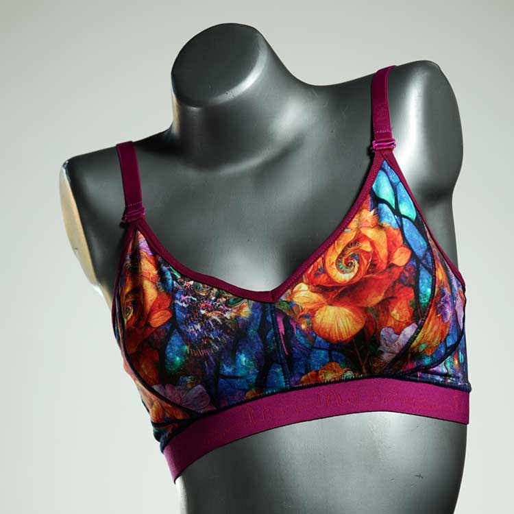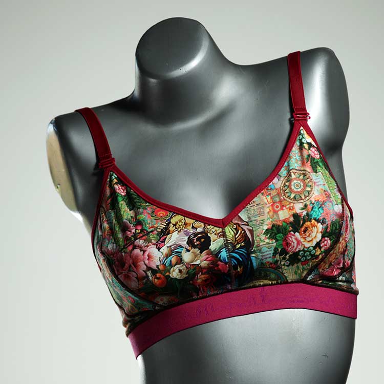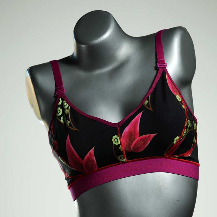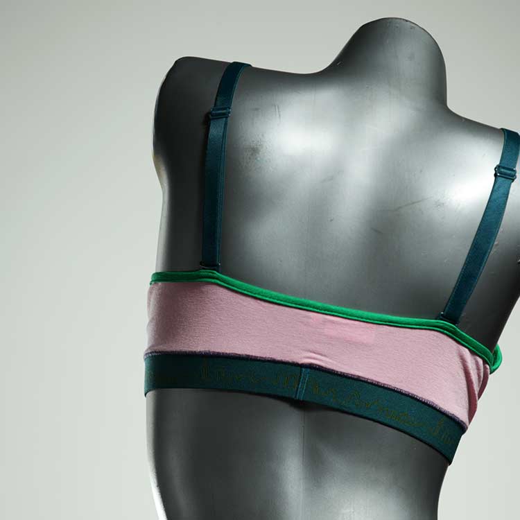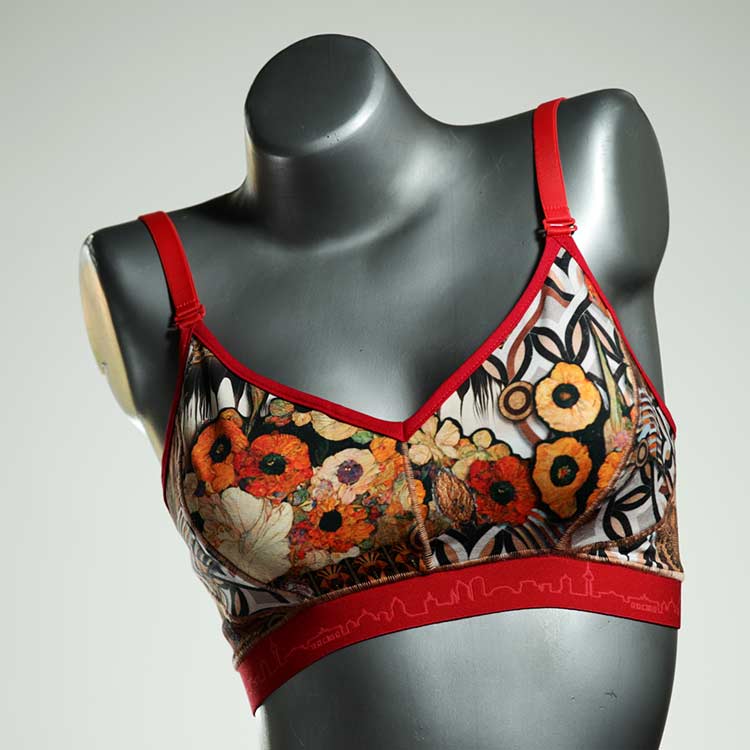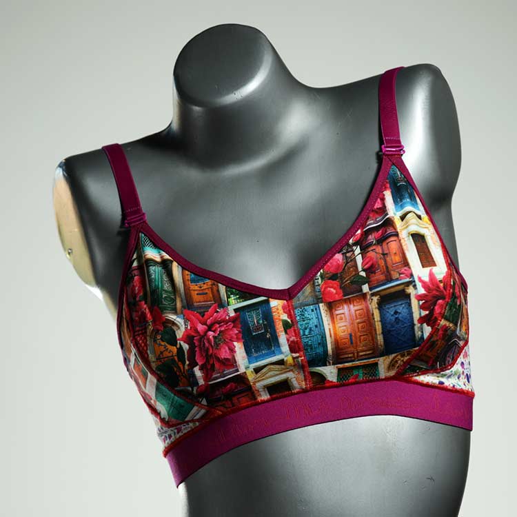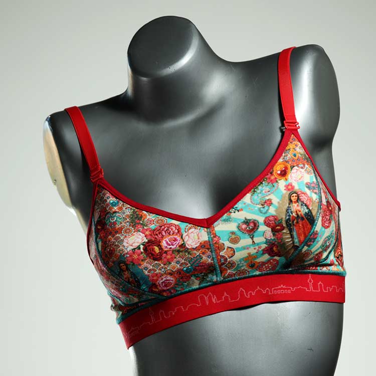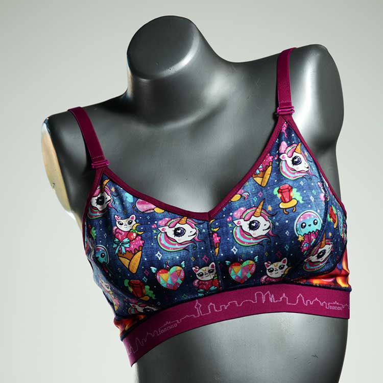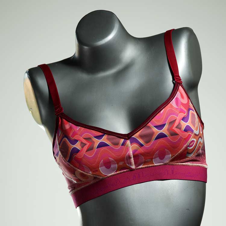Reggiseni morbidi e coccolosi realizzati in jersey di cotone traspirante con design unici. Veri pezzi unici che abbiamo disegnato secondo i vostri desideri. Senza fili, senza cuscino o chiusura, sono comodi da indossare e si adattano perfettamente al tuo corpo. Le spalline sono larghe 16 mm, le coppe sono a doppio strato e realizzate in cotone organico all'interno. I reggiseni di Berlin Underwear non sono principalmente sexy, dovrebbero essere comodi. Sono adatti anche come reggiseni per l'allattamento.