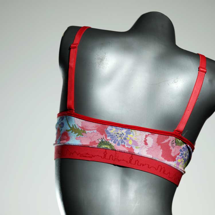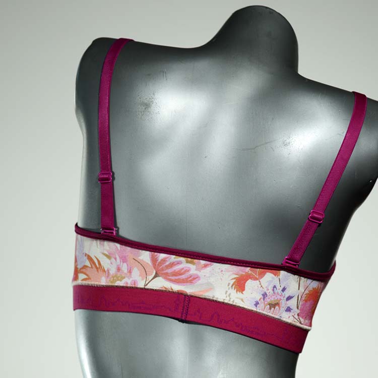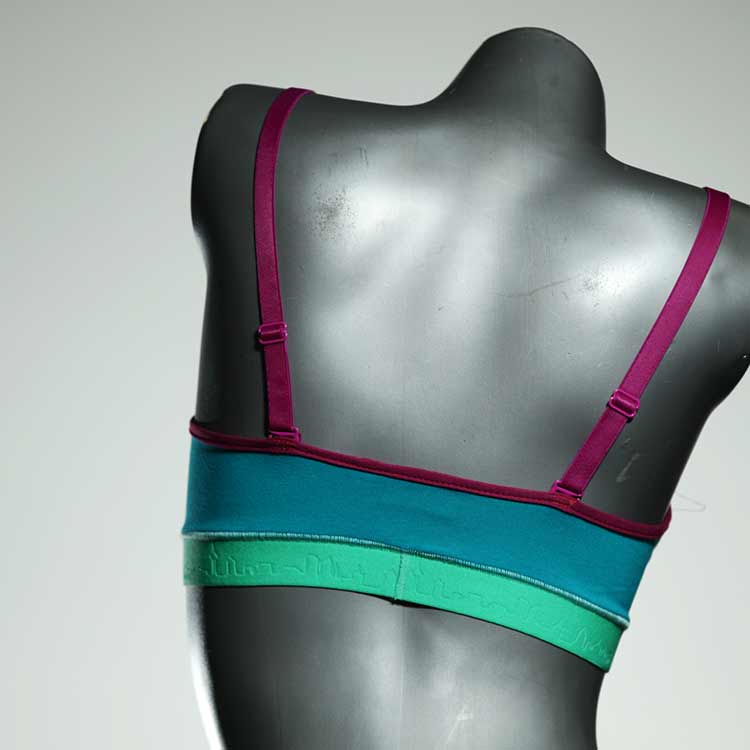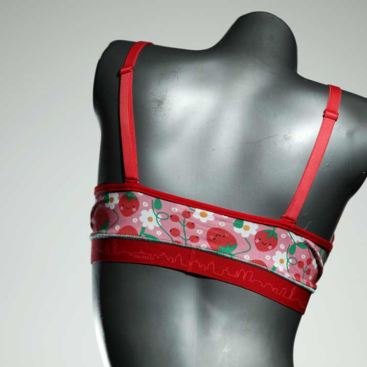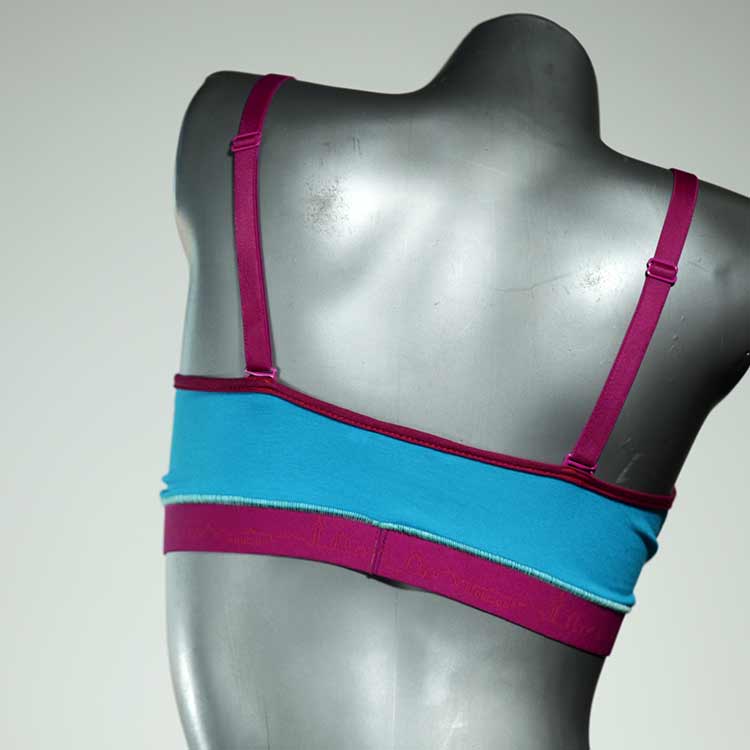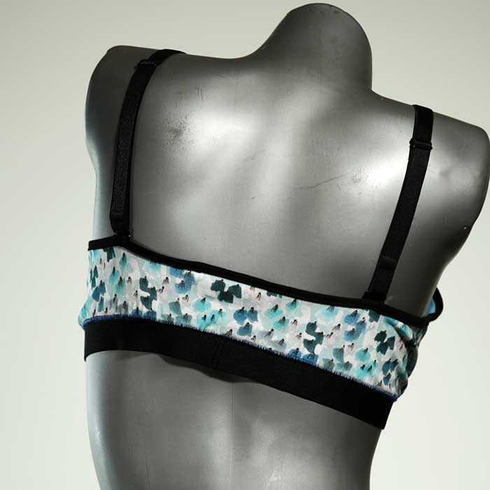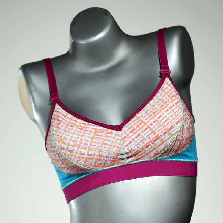 Knuffelzachte bh van ademende biokatoenen jersey met unieke designs. Een echt uniek stuk van lokale productie. Draadloos, zonder kussen of sluiting, ze zijn comfortabel om te dragen. De bandjes zijn 16 mm breed, de cups zijn dubbellaags en aan de binnenkant gemaakt van biologisch katoen. Ook geschikt als voedingsbeha.