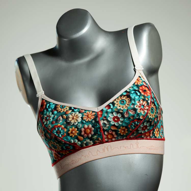 Knuffelzachte bh's van ademende katoenen jersey met unieke designs. Echte one-of-a-kind stukken die we hebben ontworpen naar uw wensen. Draadloos, zonder kussen of sluiting, ze zijn comfortabel om te dragen en passen zich perfect aan je lichaam aan. De bandjes zijn 16 mm breed, de cups zijn dubbellaags en aan de binnenkant gemaakt van biologisch katoen. Bh's van Berlin Underwear zijn niet in de eerste plaats sexy, ze moeten comfortabel zijn. Ze zijn ook geschikt als voedingsbeha.