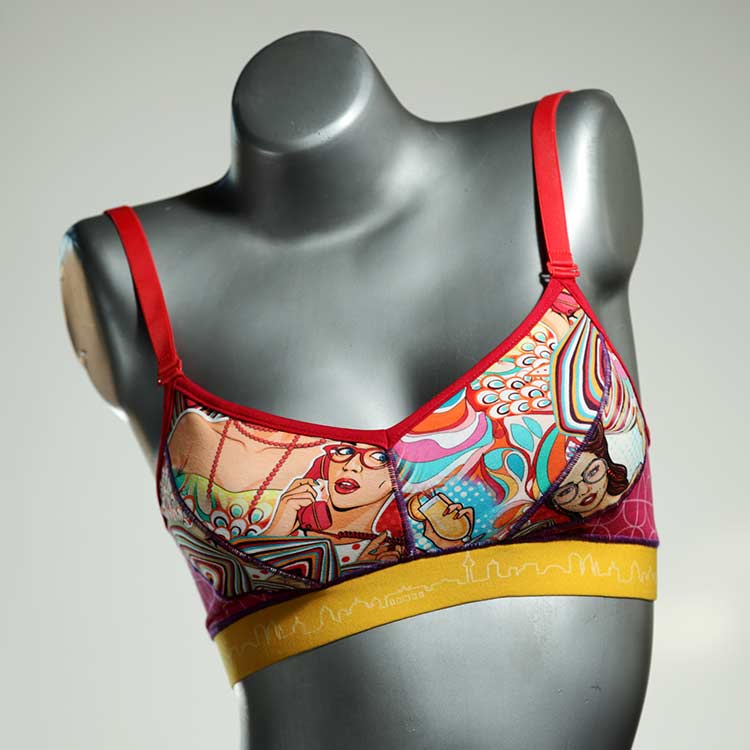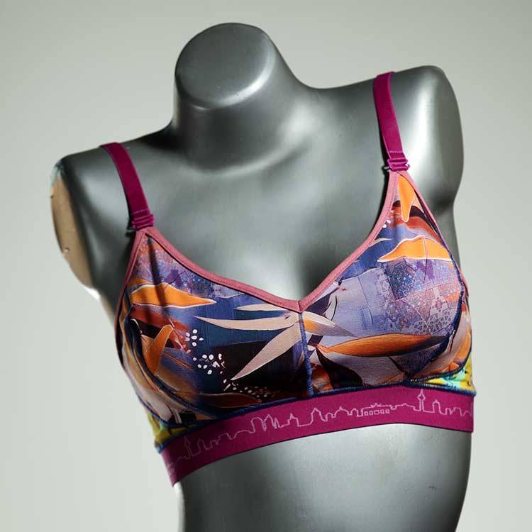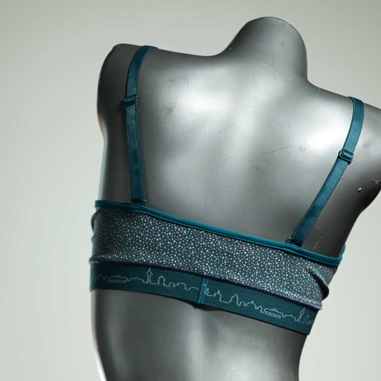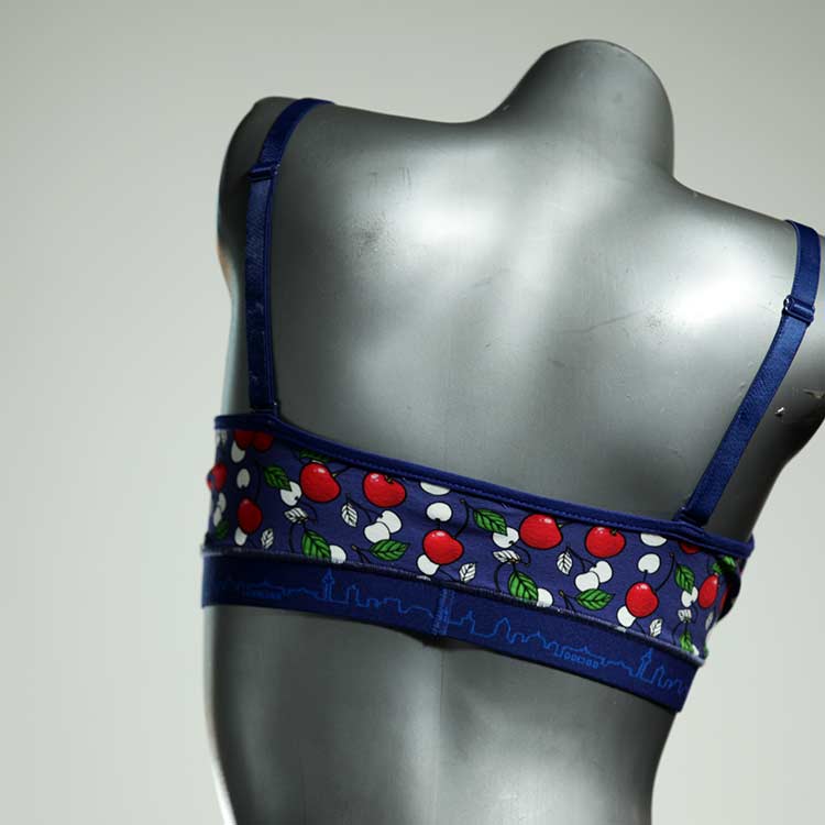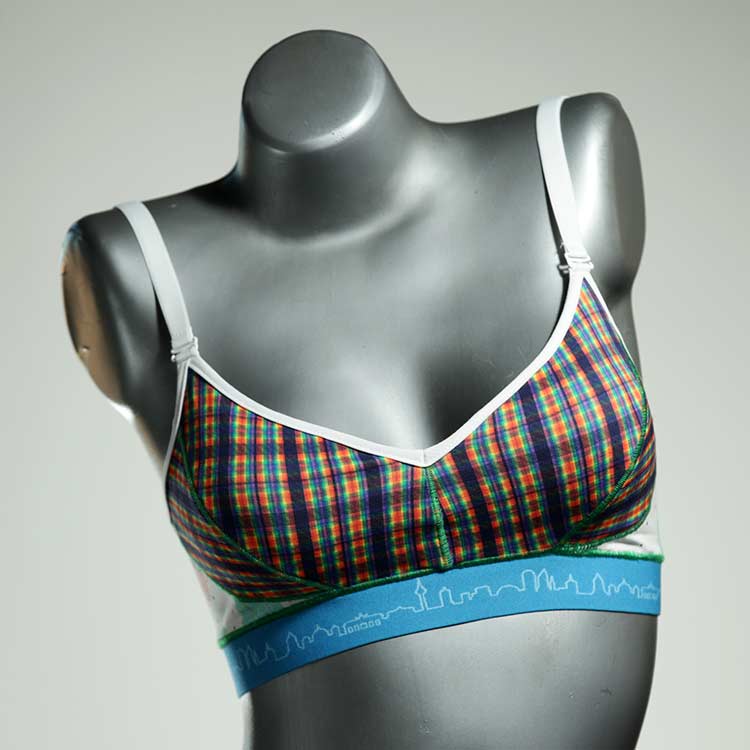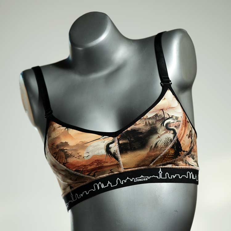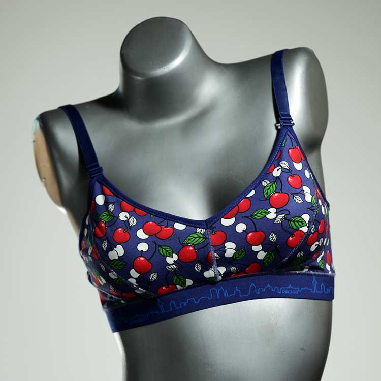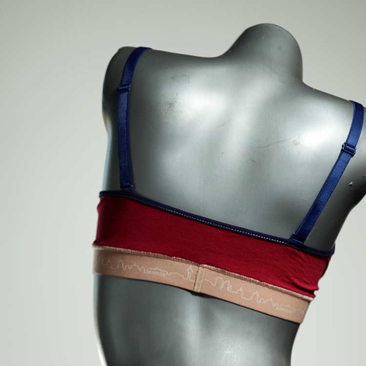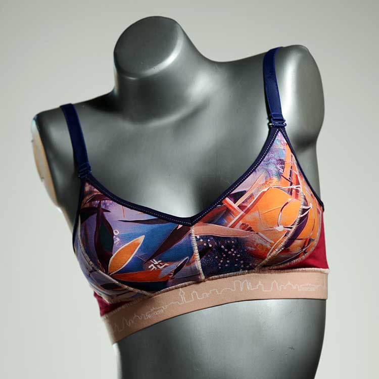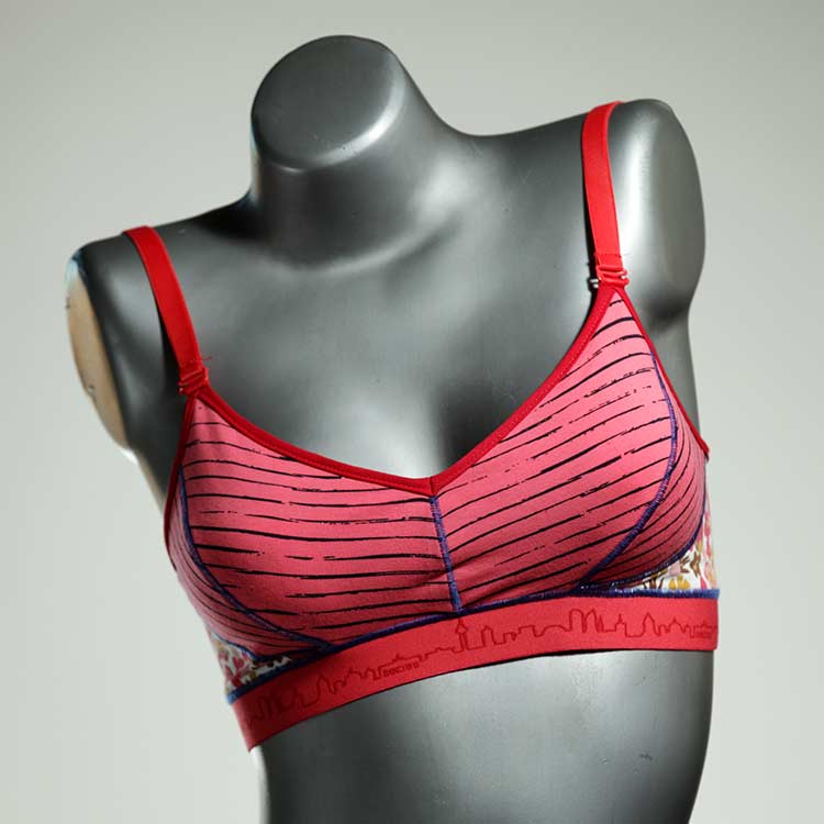 Knuffelzachte bh's van ademende katoenen jersey met unieke designs. Echte one-of-a-kind stukken die we hebben ontworpen naar uw wensen. Draadloos, zonder kussen of sluiting, ze zijn comfortabel om te dragen en passen zich perfect aan je lichaam aan. De bandjes zijn 16 mm breed, de cups zijn dubbellaags en aan de binnenkant gemaakt van biologisch katoen. Bh's van Berlin Underwear zijn niet in de eerste plaats sexy, ze moeten comfortabel zijn. Ze zijn ook geschikt als voedingsbeha.