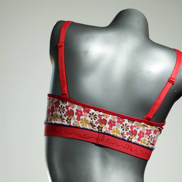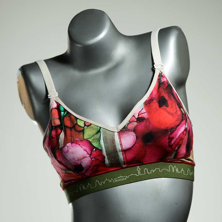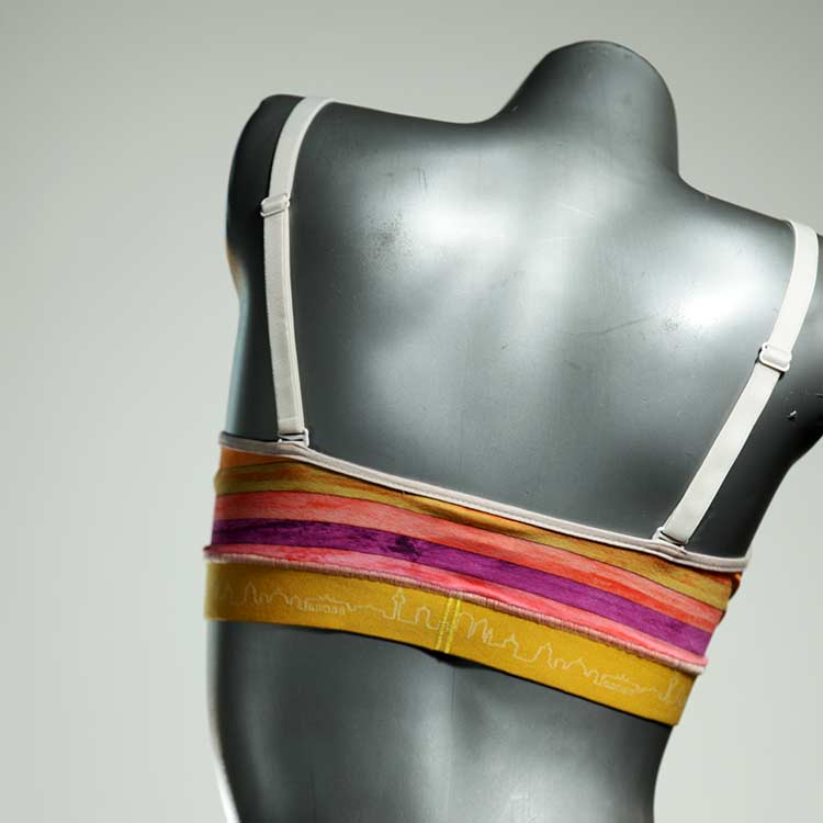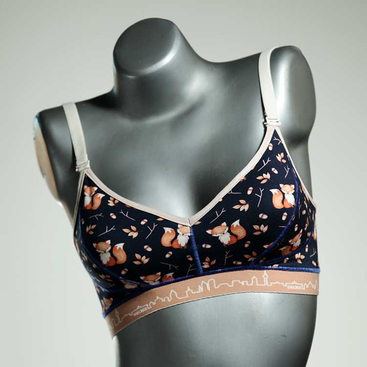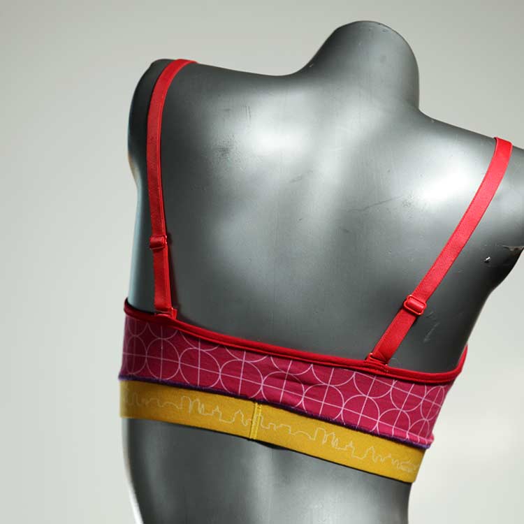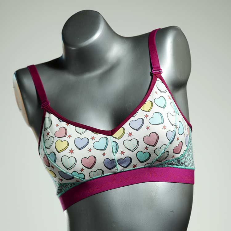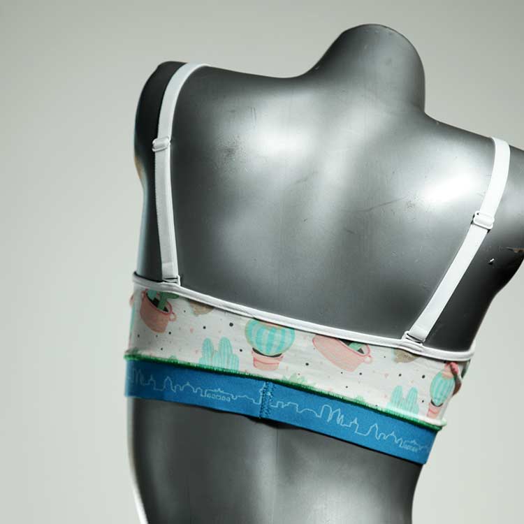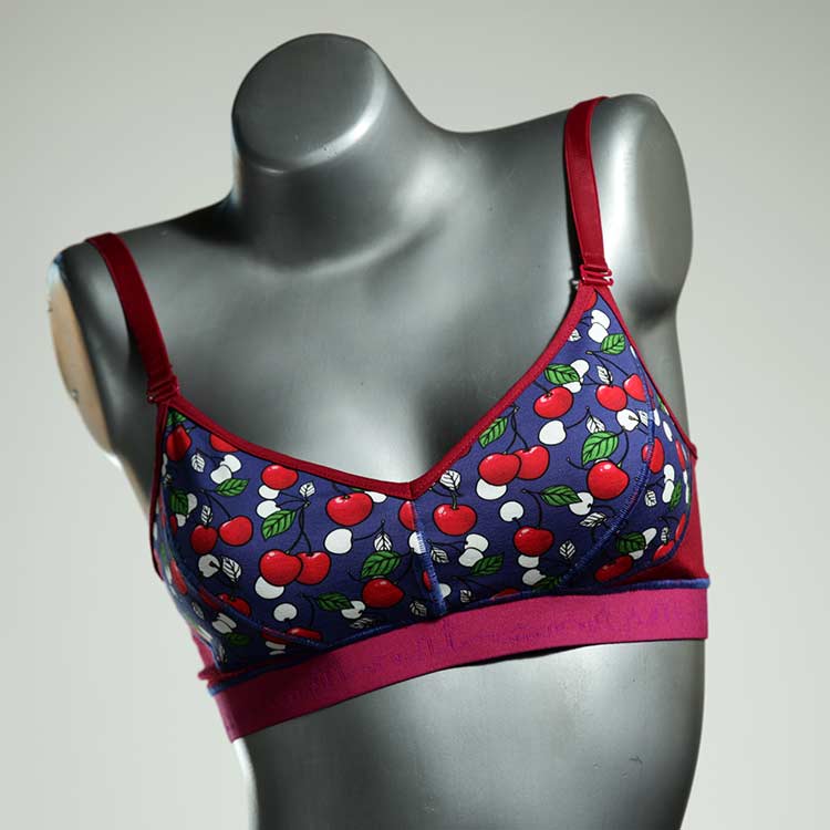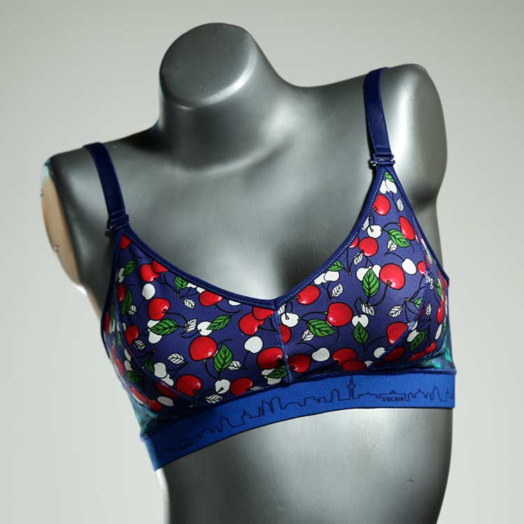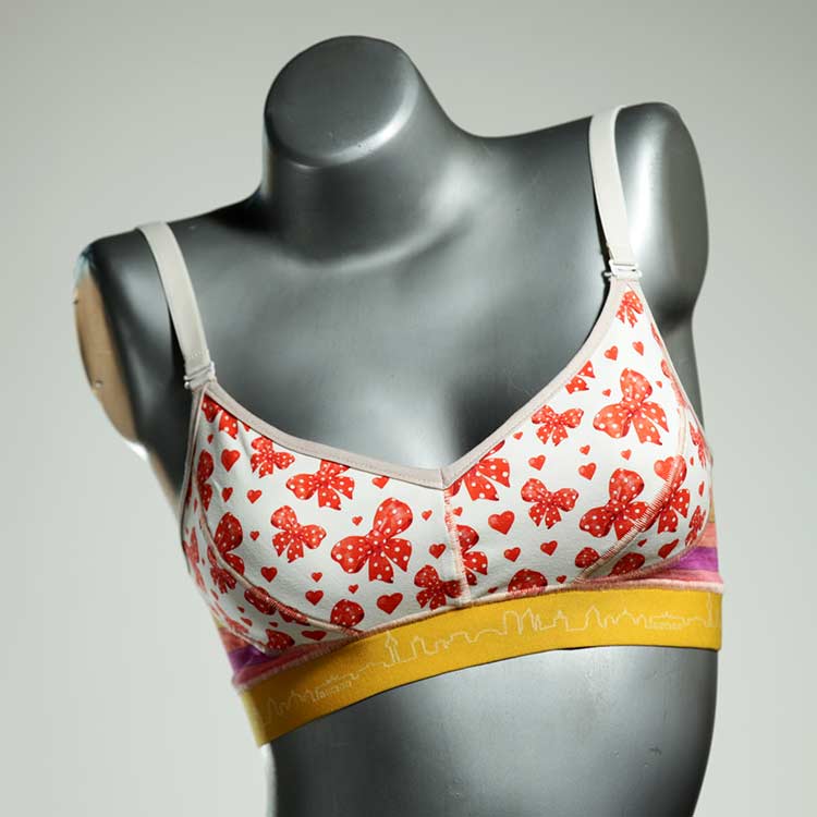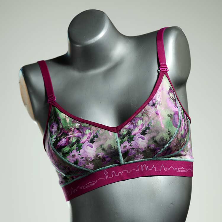 Knuffelzachte bh's van ademende katoenen jersey met unieke designs. Echte one-of-a-kind stukken die we hebben ontworpen naar uw wensen. Draadloos, zonder kussen of sluiting, ze zijn comfortabel om te dragen en passen zich perfect aan je lichaam aan. De bandjes zijn 16 mm breed, de cups zijn dubbellaags en aan de binnenkant gemaakt van biologisch katoen. Bh's van Berlin Underwear zijn niet in de eerste plaats sexy, ze moeten comfortabel zijn. Ze zijn ook geschikt als voedingsbeha.