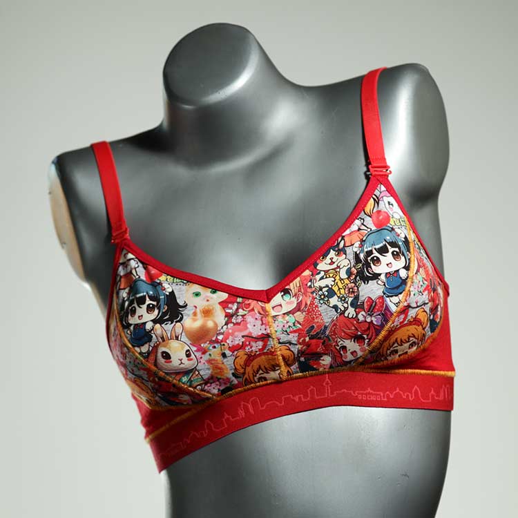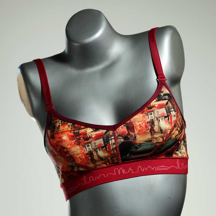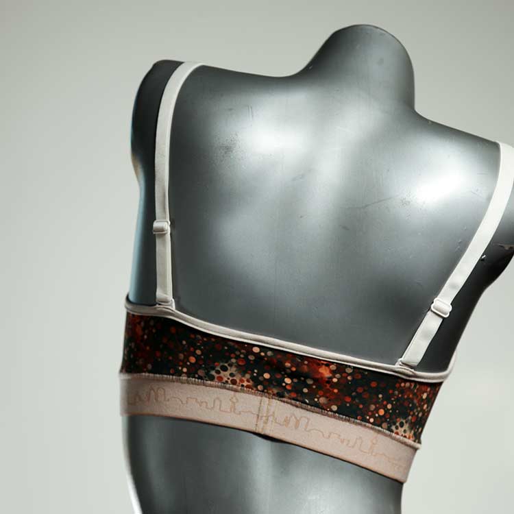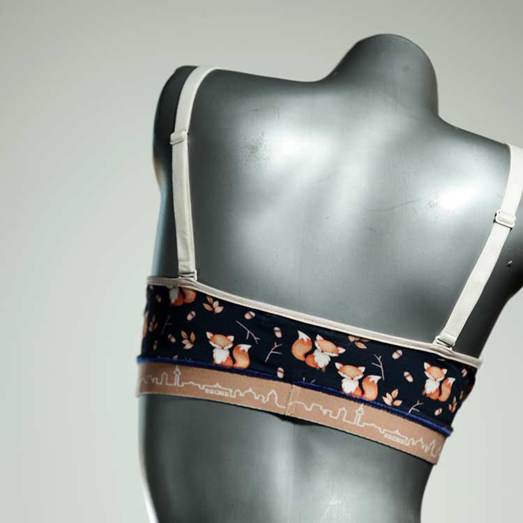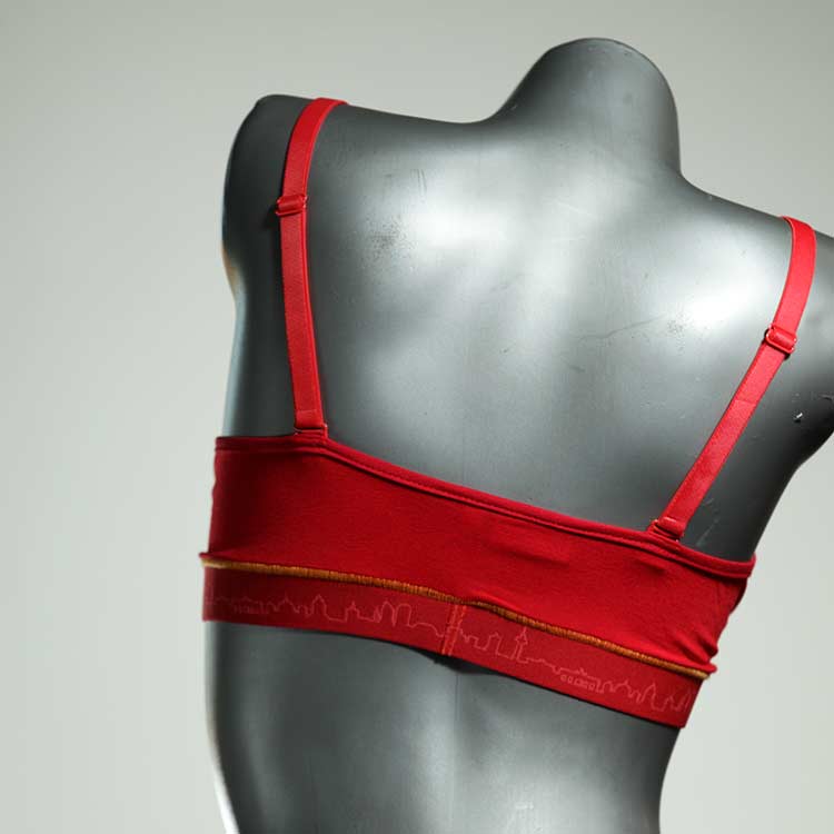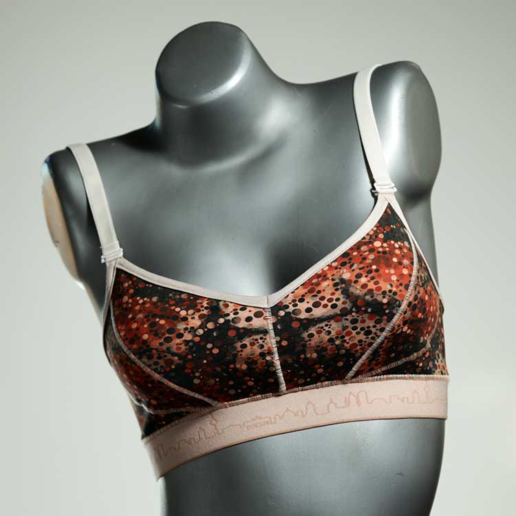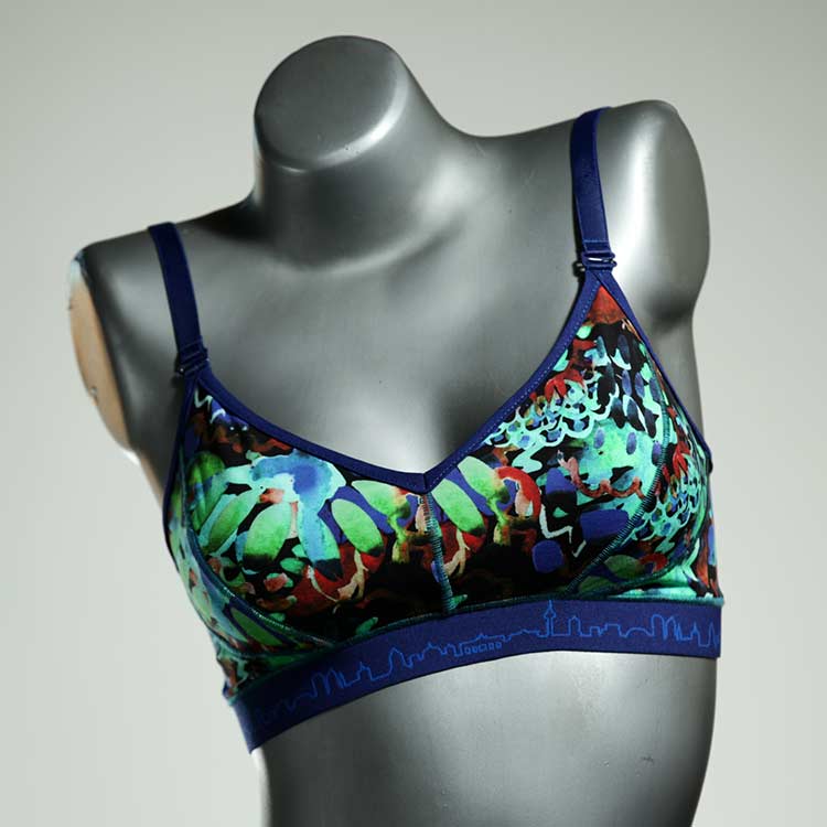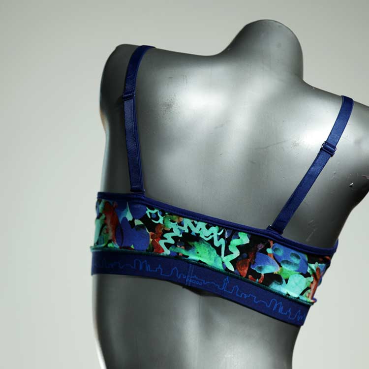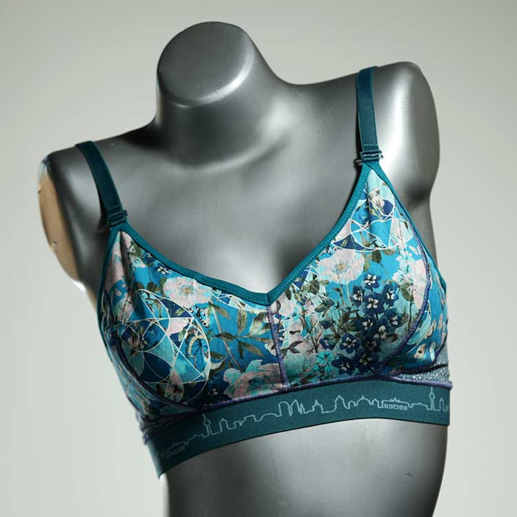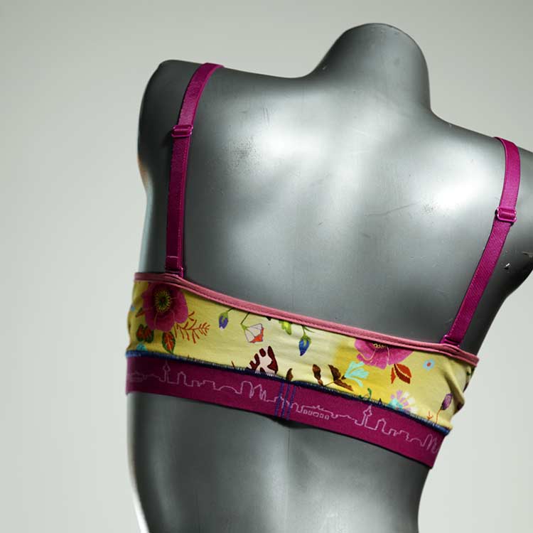 Knuffelzachte bh's van ademende katoenen jersey met unieke designs. Echte one-of-a-kind stukken die we hebben ontworpen naar uw wensen. Draadloos, zonder kussen of sluiting, ze zijn comfortabel om te dragen en passen zich perfect aan je lichaam aan. De bandjes zijn 16 mm breed, de cups zijn dubbellaags en aan de binnenkant gemaakt van biologisch katoen. Bh's van Berlin Underwear zijn niet in de eerste plaats sexy, ze moeten comfortabel zijn. Ze zijn ook geschikt als voedingsbeha.