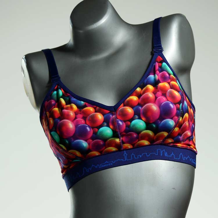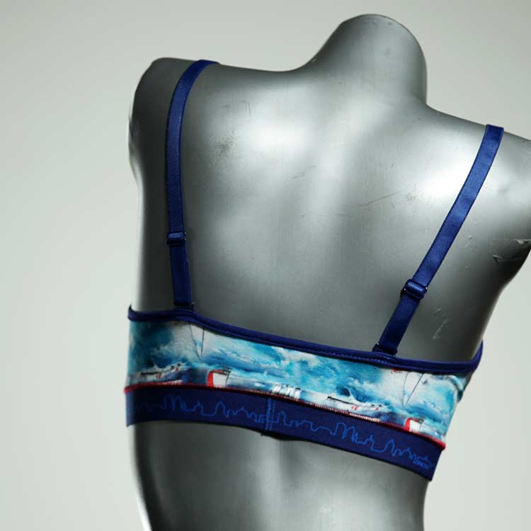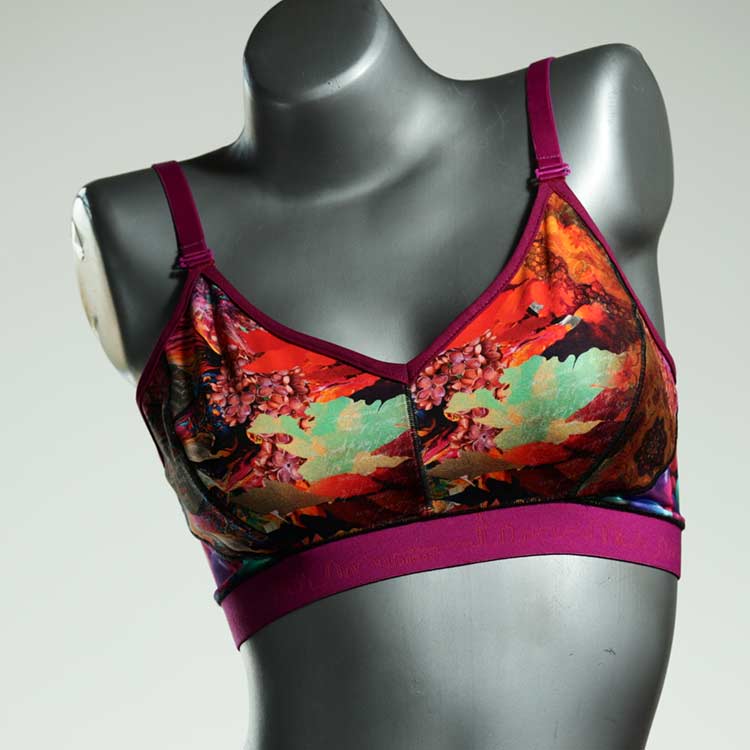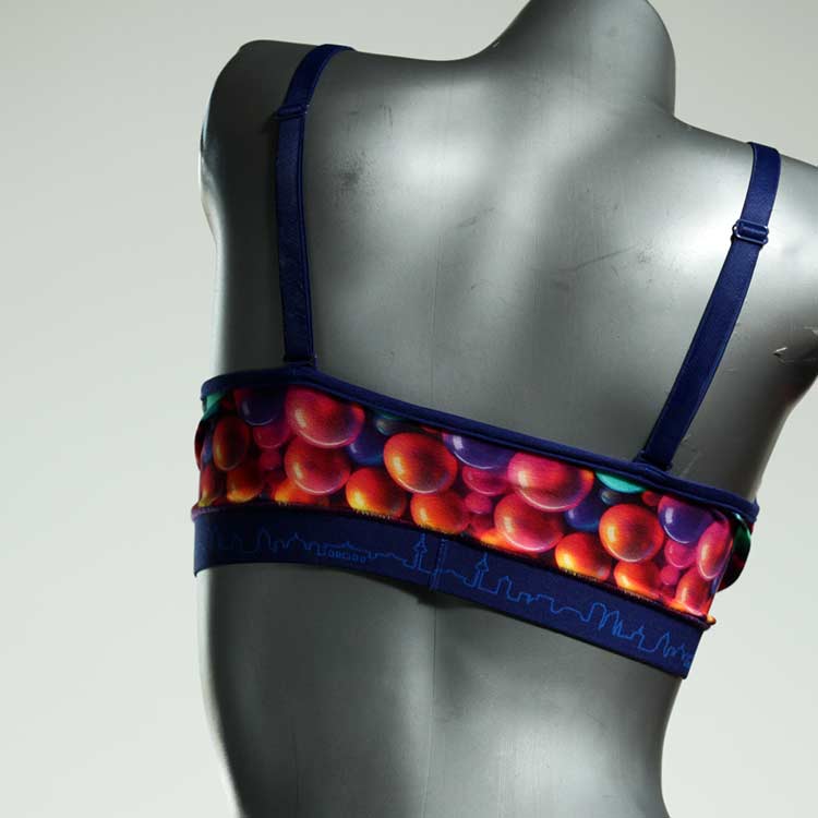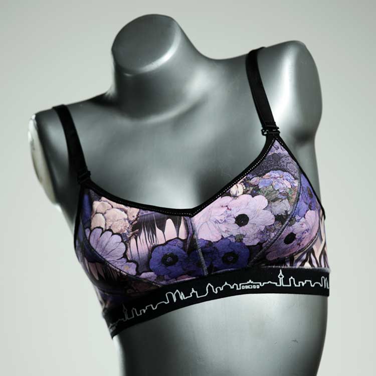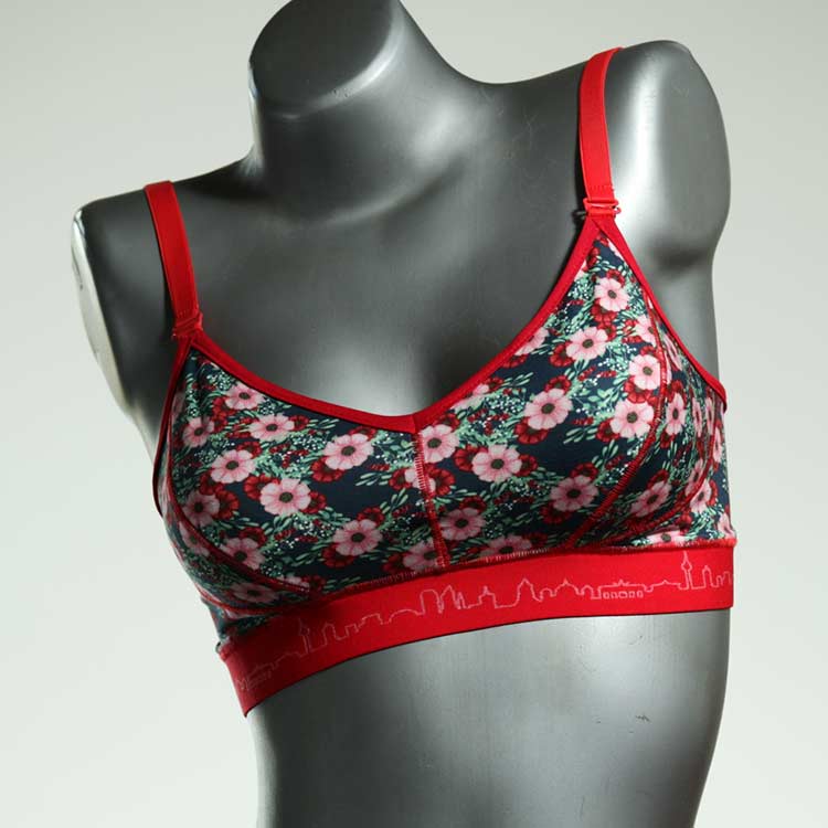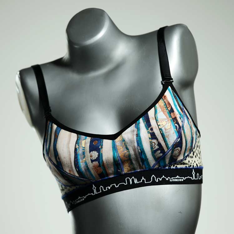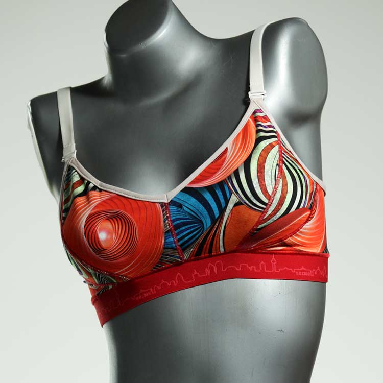 Knuffelzachte bh's van ademende katoenen jersey met unieke designs. Echte one-of-a-kind stukken die we hebben ontworpen naar uw wensen. Draadloos, zonder kussen of sluiting, ze zijn comfortabel om te dragen en passen zich perfect aan je lichaam aan. De bandjes zijn 16 mm breed, de cups zijn dubbellaags en aan de binnenkant gemaakt van biologisch katoen. Bh's van Berlin Underwear zijn niet in de eerste plaats sexy, ze moeten comfortabel zijn. Ze zijn ook geschikt als voedingsbeha.