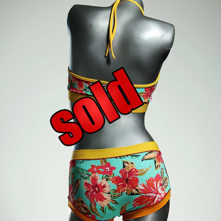 Net als de hotpants en bh's zijn deze sportbikinisets niet te strak gesneden, passen ze net zo goed en glijden ze niet af. Het materiaal is van hoge kwaliteit en lichtecht Lycra van een kleine weverij in de buurt van Barcelona. De banden zijn 16 mm breed en verstelbaar. Top zonder beugel, kussen of sluiting. Gemaakt van hoogwaardig Lycra en zonder elastiek. Met zwemvoering aan de voorkant.