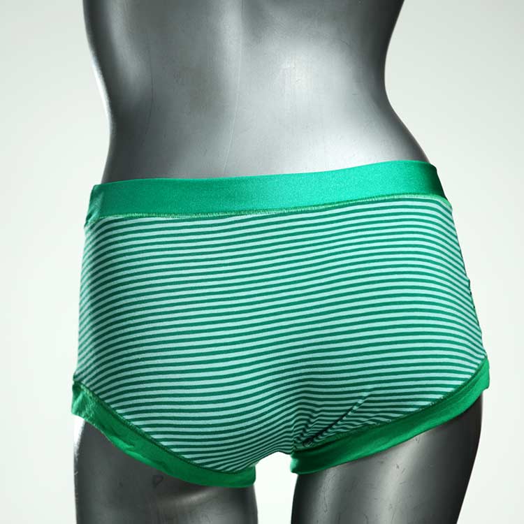 Hotpants zijn onze meest populaire producten, direct na slipjes. Echte one-offs, handgemaakt, made in Berlin. Zijn relatief wijd uitgesneden en gemaakt van zachte, elastische en huidvriendelijke katoenen jersey zonder vervelende rubbers. Ze bedekken de bodem volledig en komen nergens vast te zitten.